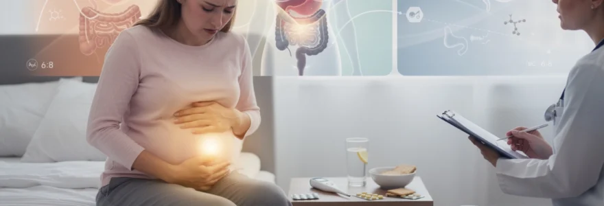 Chez les femmes présentant déjà un terrain de dyspepsie ou de reflux gastro-œsophagien avant la conception, l’augmentation de la progestérone peut exacerber des troubles préexistants. Elles décrivent souvent une gêne quasi permanente, indépendamment des repas, avec des nausées qui semblent « traîner » du matin au soir. Dans l’hyperemesis gravidarum, cette lenteur digestive vient aggraver un système déjà saturé par les vomissements, créant un cercle vicieux : plus la vidange gastrique est lente, plus les nausées sont importantes, et plus il est difficile de s’alimenter correctement, prolongeant d’autant la phase symptomatique.